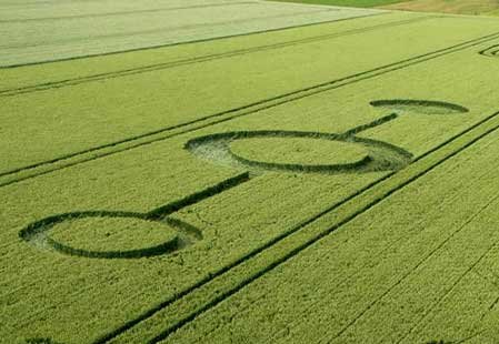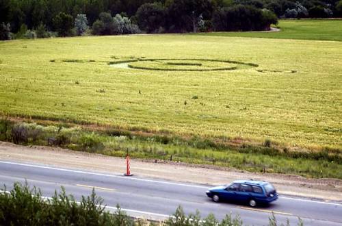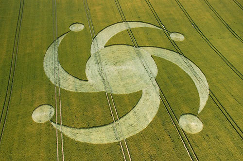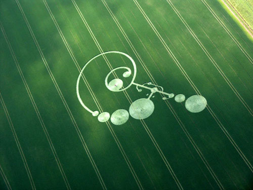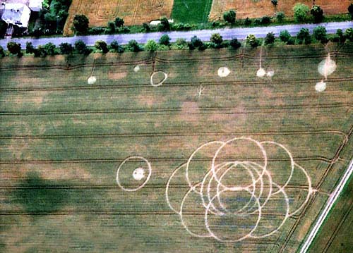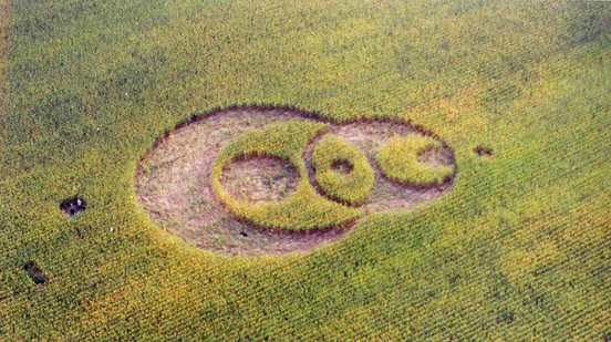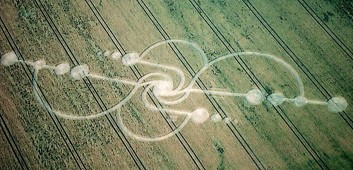 This pictures shows marks in cornfields, in most cases generated by aliens using interdimensional technology.