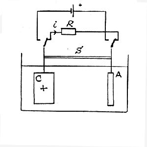 The main element in Pons-Fleischmann's scheme is a cathode that can absorb the protons. Fig. 1 shows an ordinary hydrolysis version. Note that current is necessary for water dissociation to hydrogen and oxygen and we must use power from primary source